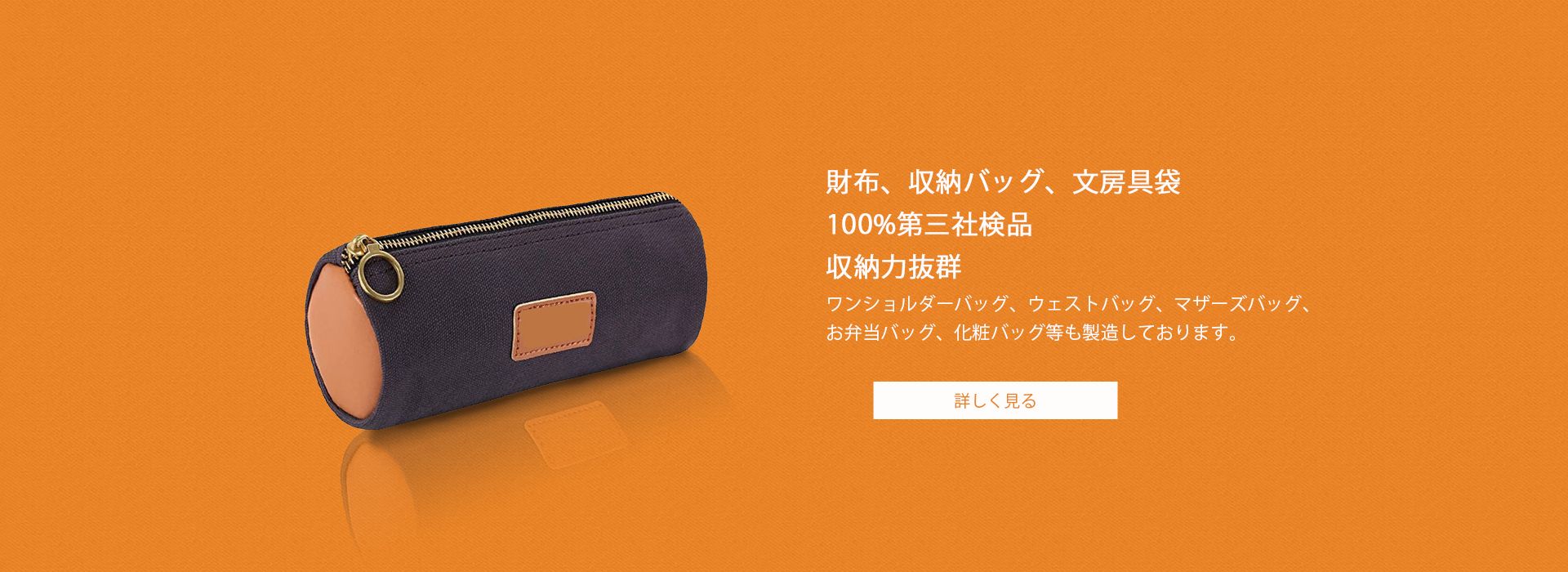 収納、小銭入り、ちょっとだけ出掛け等様々なシーンで活躍する収納バッグ、財布、文房具、透明バッグ等多種多様に展開し、生産しております。